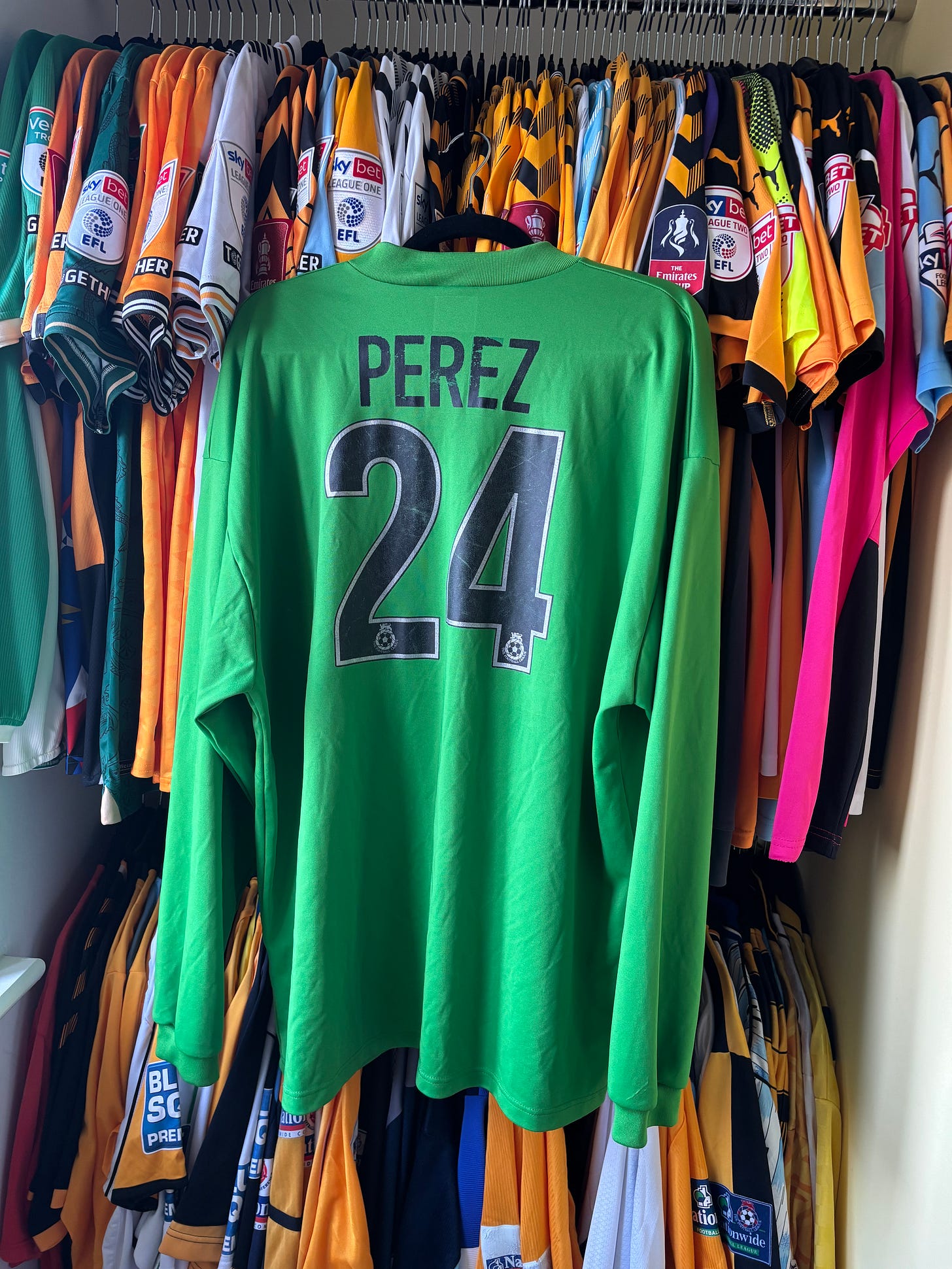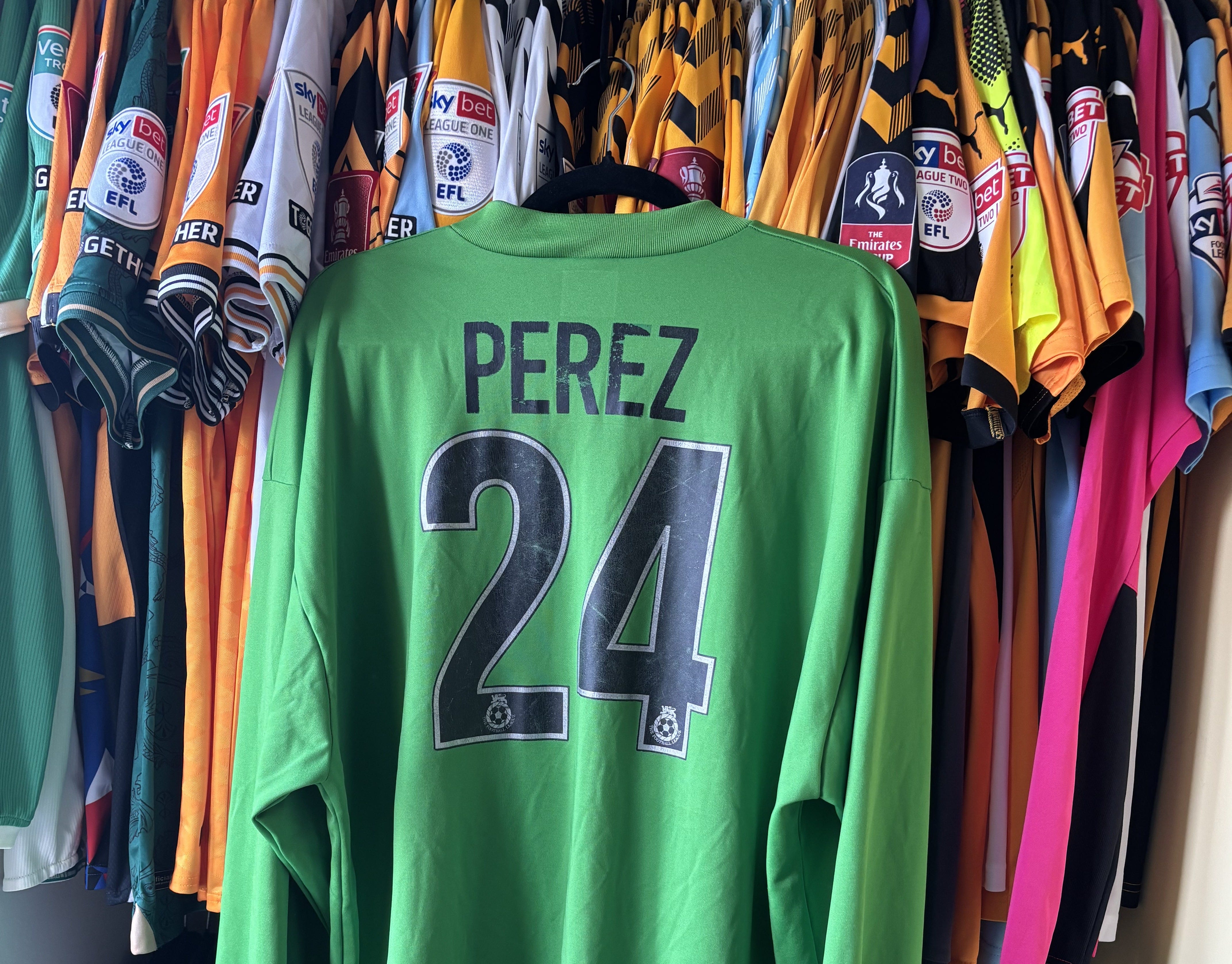 Perez was welcomed with open arms by the Abbey faithful, his pedigree and flamboyance not of the usual type of footballer to turn up in CB5. That flamboyance became immediately apparent as he did not line up in our usual goalkeeper shirt, but instead in this one-off bright green number, unusually for the time lacking any sort of padding like our regular keepers jersey. Hastily printed with his name and the number 24, but without any Nationwide league sleeve patches, he stood out like a breath of fresh air.