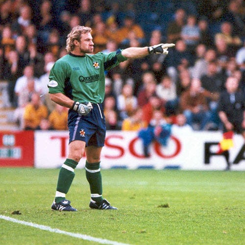 It was a surprise when Perez signed for United the following season. His rumoured £8,000 a week wages took a significant cut, but still caused the club to restructure its wage policy. McFarland called the coup ‘the best signing [he] ever made’, although Perez wasn’t able to keep the manager in the job past February 2001 as United lumbered to another 19th place finish under a returning John Beck. Perez endeared himself to the fans even as United continued to struggle in Division Two with his committed, never-say-die attitude. Although there was the odd goalkeeping howler along the way, plus the occasional rush of blood to the head and heart-stopping forays outside of his box, Lionel’s love for the city, club and fanbase was always clear, and he won us more than our fair share of points single-handedly.
